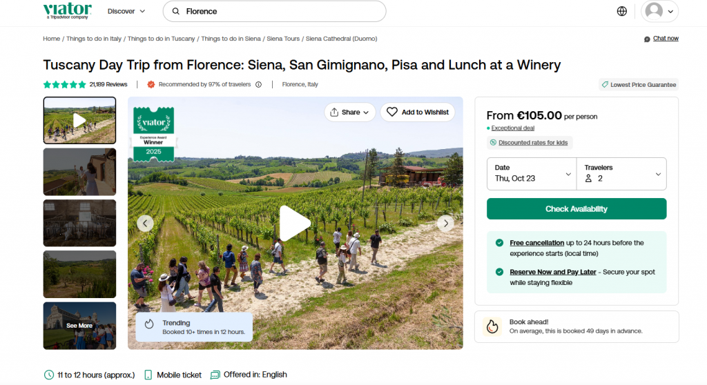 Avec Tourbiz, vos offres Viator sont automatiquement synchronisées avec vos autres canaux : site web, Google Things To Do, GetYourGuide et billetterie.