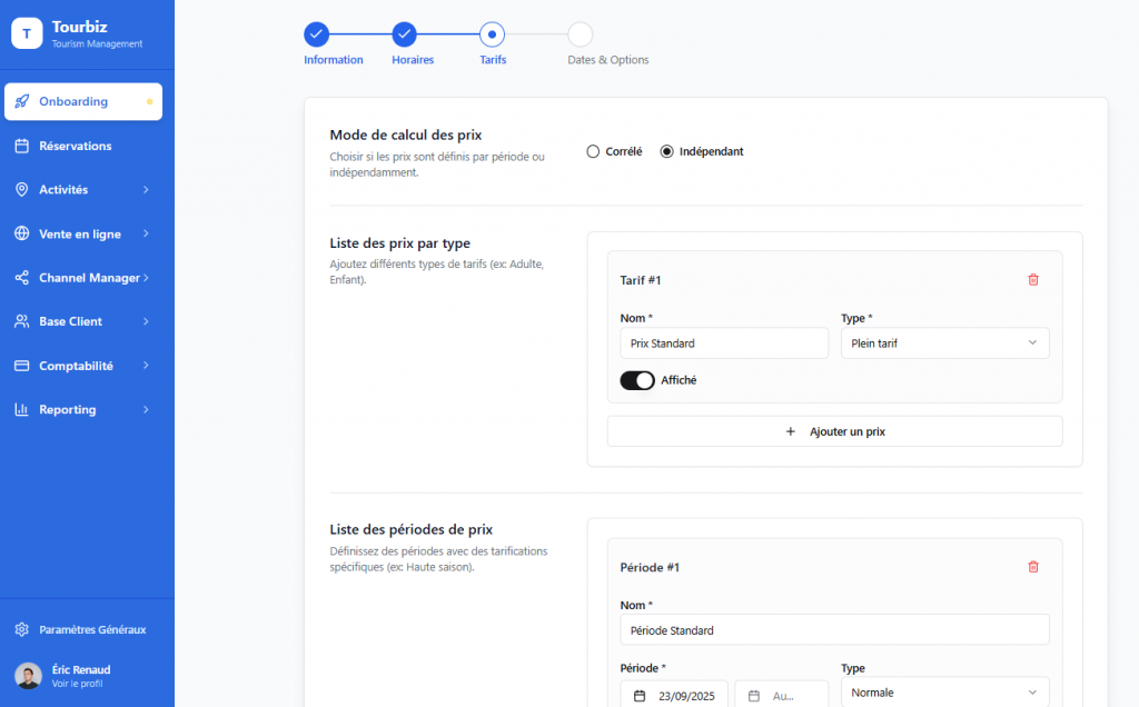 Oui. Vous pouvez gérer des tarifs différents par âge, groupe, canal ou langue. Vous pouvez aussi ajouter des options facultatives (ex. : supplément coupe-file, panier repas, photos souvenirs) ou des extras obligatoires si besoin. Tout est paramétrable.